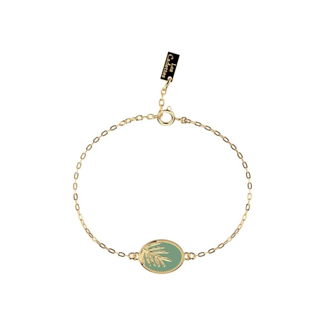 Bracelet Les Cadettes Palmier en laiton finition dorée et laque vert d'eau