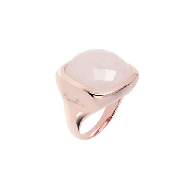 Alba Bague Bronzallure Alba en métal doré rose à l'or fin 18 carats et quartz rose, taille 54