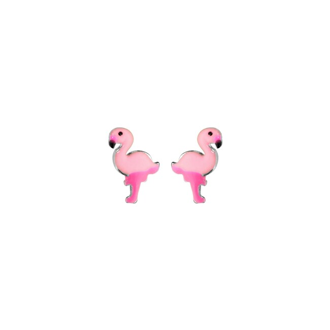 Boucles d'oreilles tige argent rhodié tête chat résine blanc et rose