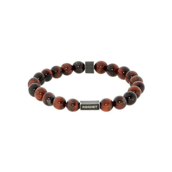Bracelet Rochet ZZN en perles 8mm œil de taureau et acier vintage