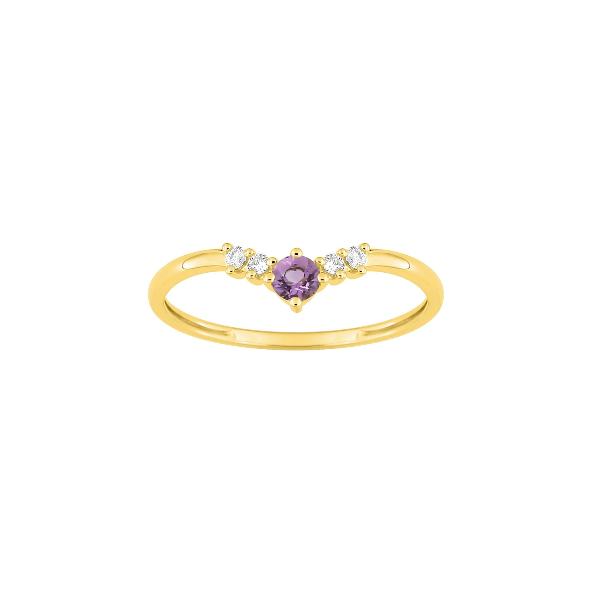 Bague en or jaune, oxyde de zirconium et améthyste