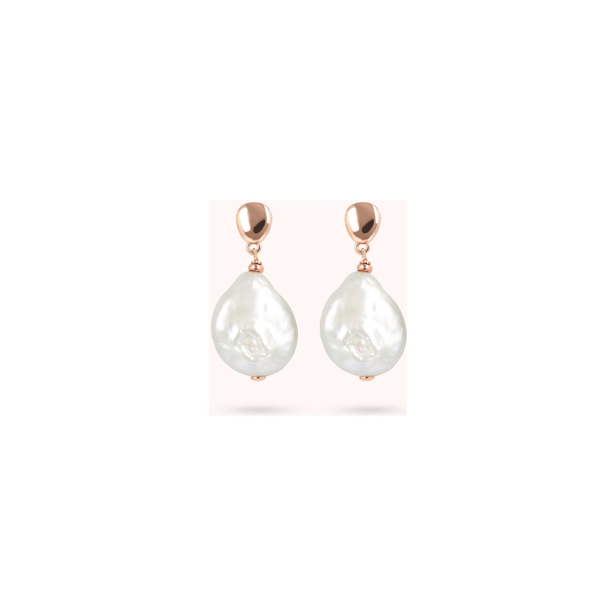 Boucles d'oreilles Bronzallure Maxima en métal doré rose à l'or fin 18 carats et perle