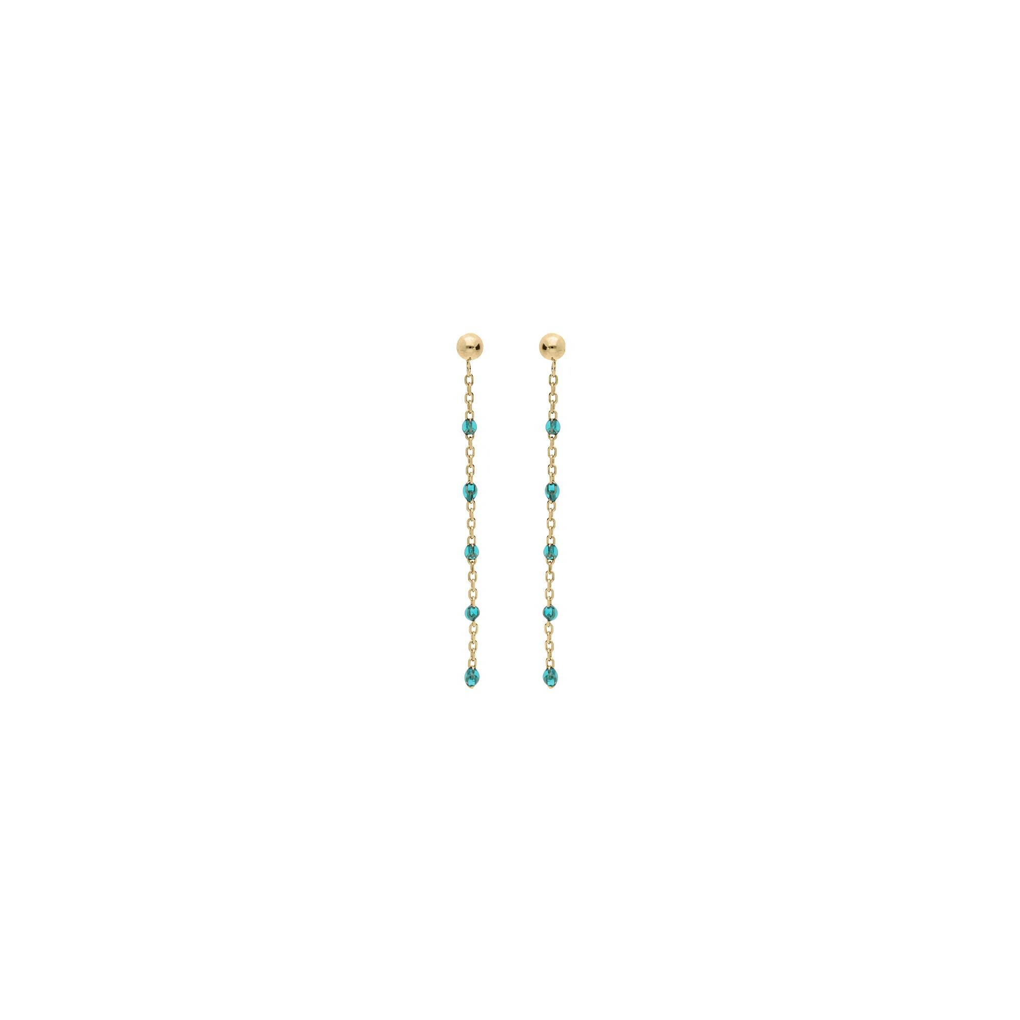 Boucles d'oreilles tige argent et dorure jaune olives résine bleu transparent