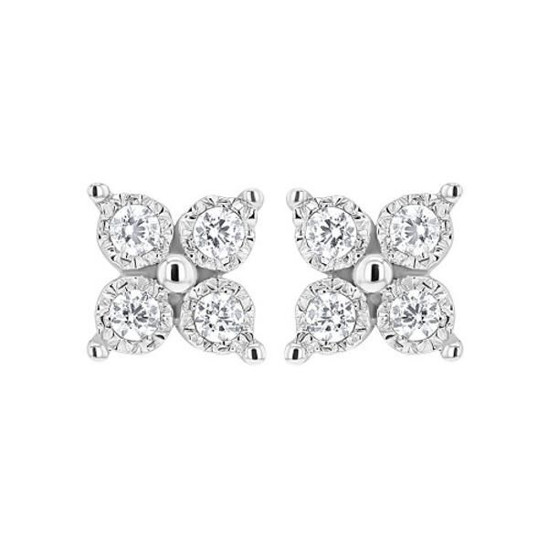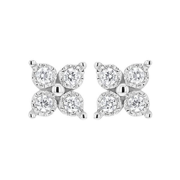 Boucles d’oreilles boutons – Or 750 Blanc – Diamant 0,10 ct