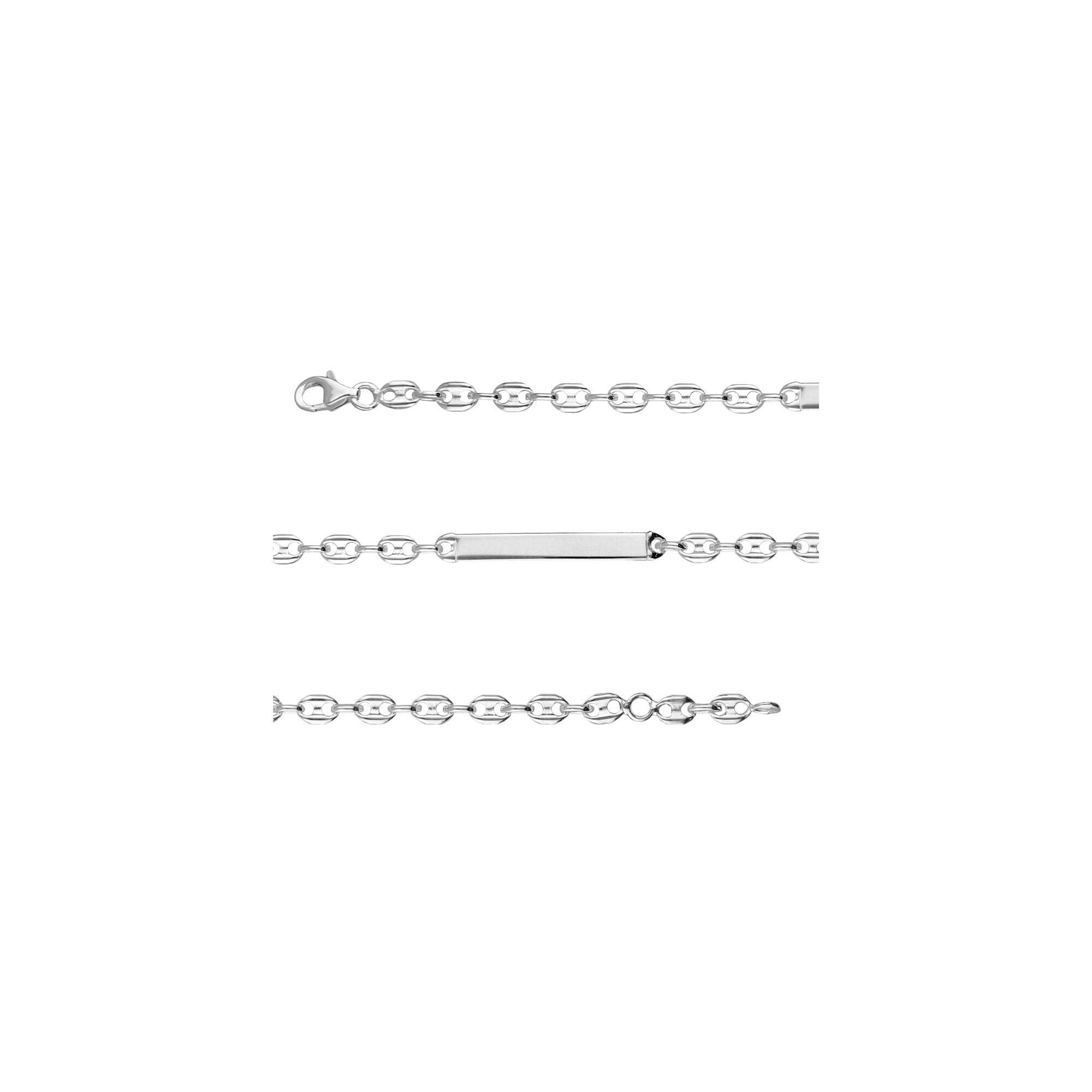 Bracelet identite argent plaque droite maille grain de café fermoir mousqueton 17cm réglable 15cm