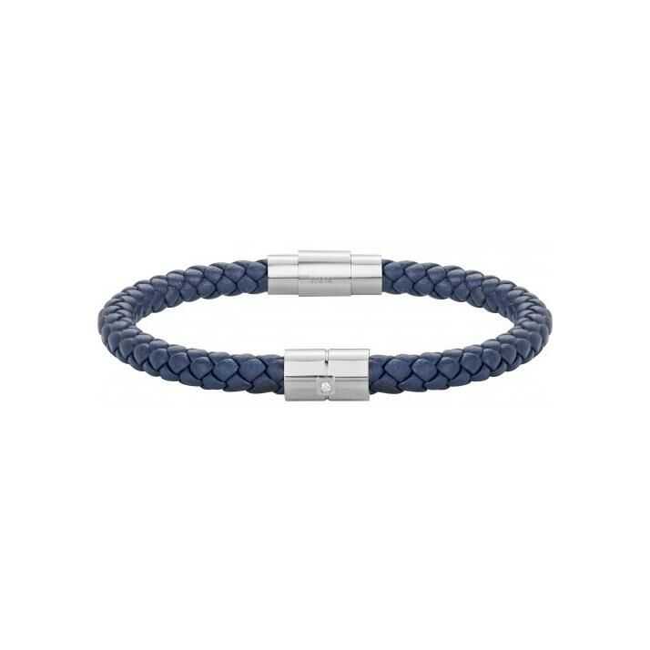 Bracelet Phebus en acier, cuir et diamant 0.015ct
